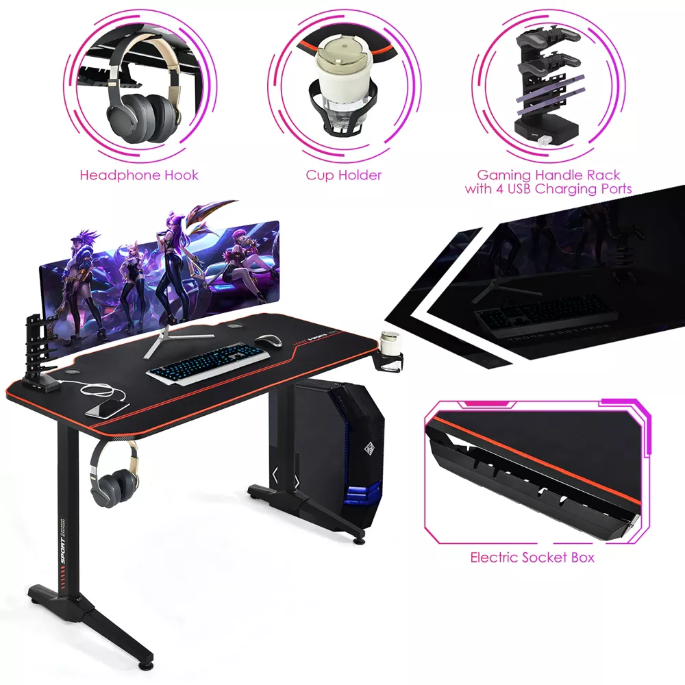 Costway 55” Gaming Desk T-Shaped Computer Desk wFull Desk Mouse Pad&Gaming Handle Rack